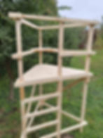 Bei unseren Kanzeln sind die Seitenteile sowie das Dach und der Boden vorgefertigt, so dass eine Kanzel aus 6 Teilen besteht, eine Schlafkanzel aus 8 Teilen. Bei Kanzeln mit Fenstern sind diese auch schon eingebaut, die Balkone und die Geländer sind ebenfalls vormontiert.